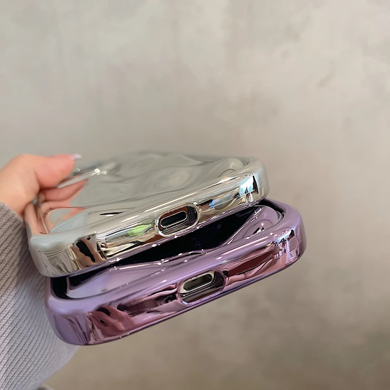 Glossy 3D Meteorite Texture Plating Silver Phone Case For iPhone