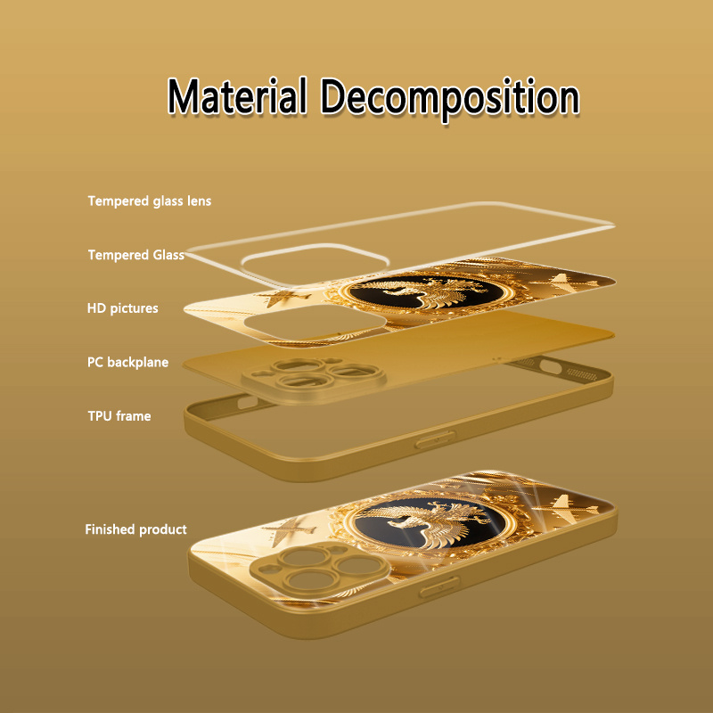 A High-End Glass Phone Case Featuring a Collage of a Golden Eagle And Airplane, Compatible with for iphone 16 Pro Max/16E/15 Pro/14 Plus/13 Pro Max/12/11 Pro. It'S Trendy, Stylish, Visually Appealing, And Offers a Premium